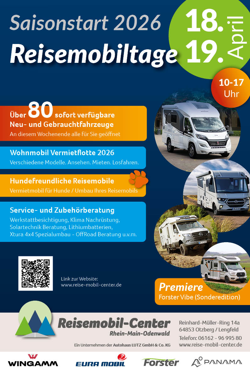 Otzberg-Lengfeld. Am 25. und 26. Oktober lädt das Reisemobil-Center Rhein-Main-Odenwald zu den großen Reisemobil-Aktionstagen ein – ein Muss für alle Wohnmobilfreunde und solche, die es werden wollen.